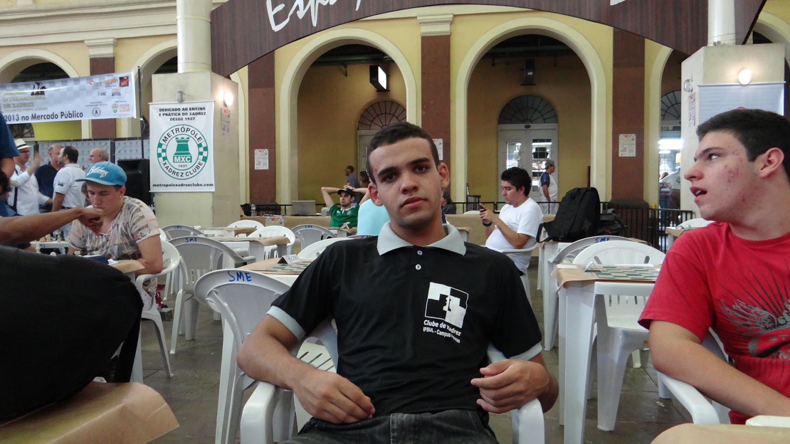 Em 2013 o CXIFSUL participou pela 3ª vez do tradicional Torneio do Mercadão. Dessa vez nossa visita não foi tão frutífera como no ano passado, quando Lucélia Vieira foi campeã do torneio, mas pelo menos Mr. Bruno Teixeira trouxe o 3º lugar do Sub 18 (mísero 3º lugar, mas melhor que nada), e olhem que isso só foi possível após brutalmente forçar um final de rei, bispo e dama contra rei - Bruno só com o rei, é claro (Kauan Flach vs. Bruno Teixeira - 1/2 -1/2).